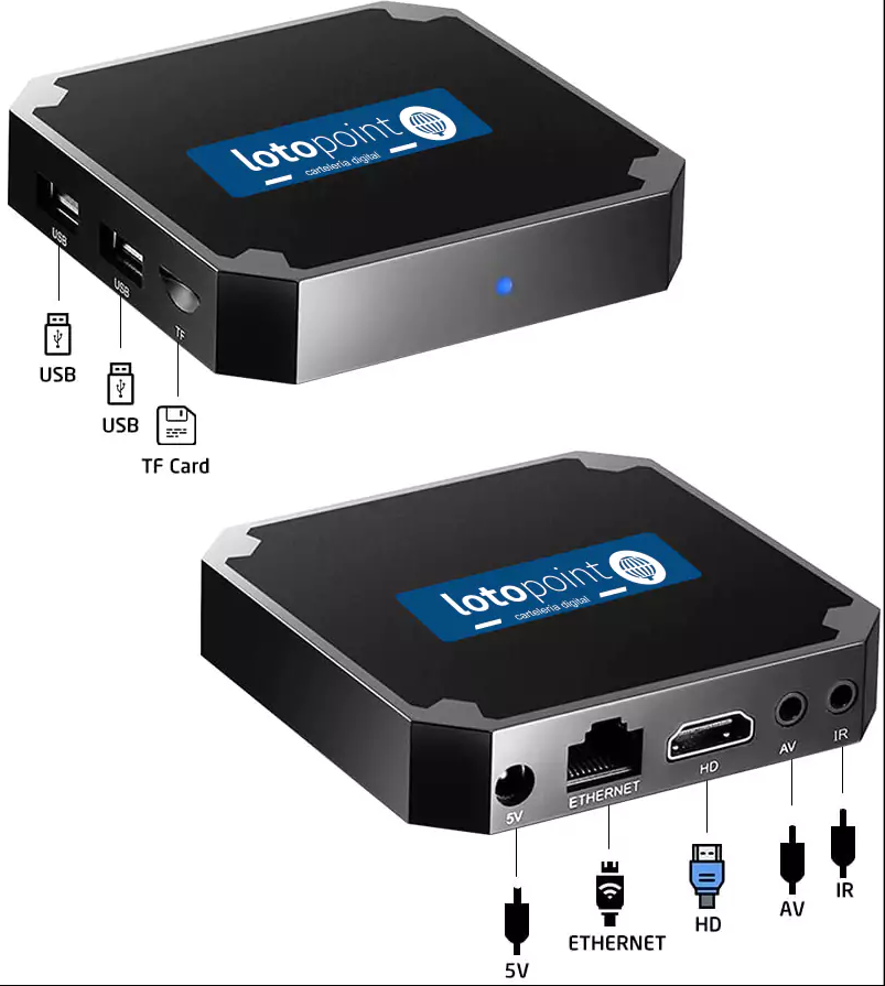 Con este Kit que consiste en un mini PC que gestiona un programa de cartelería digital con el que puedes convertir cualquier pantalla de su propiedad en una lotopoint en la que mostrar los últimos resultados y próximos botes. (Requiere una pantalla que disponga de conexión por cable HDMI)
